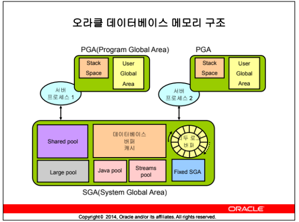 서버 또는 백그라운드 프로세스를 시작할 때 오라클 데이터베이스에서 생성되는 비공유 메모리이다.
