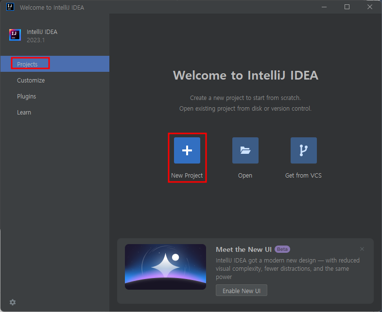 - Projects 메뉴 클릭 > New Project 클릭