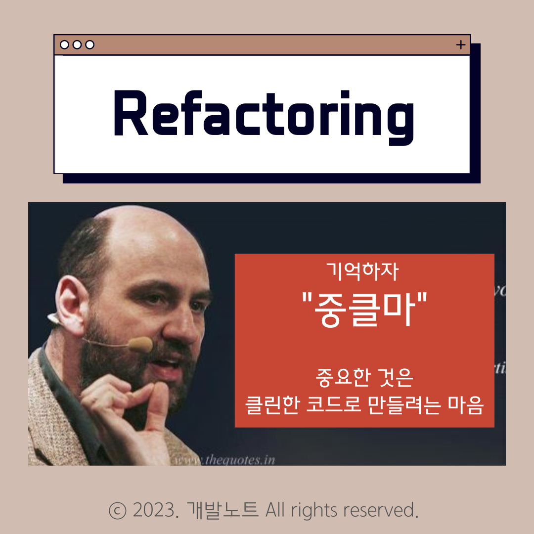 유투브에 마틴 파울러의 리팩토링에 대한 키노트 발표가 있으니 한번 쯤 봐볼 것!