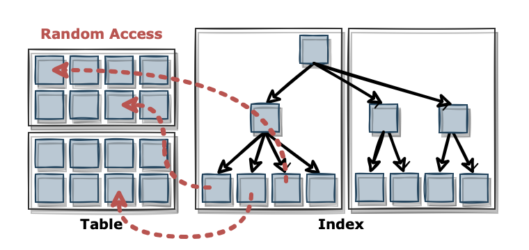 그러나 시퀀셜 액세스와 multiblock i/o 가 아무리 좋아도 수십~수백 건의 "소량" 데이터를 찾을 때 수백만~수천만 건 데이터를 스캔하는 것은 비효율적이다. 그래서 큰 테이블에서 소량 데이터를 검색할 때는 반드시 인덱스를 이용해야 한다.