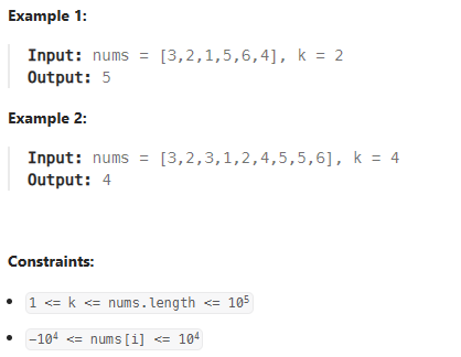 정렬되지 않은 배열에서 K번째 큰 요소를 추출하라.